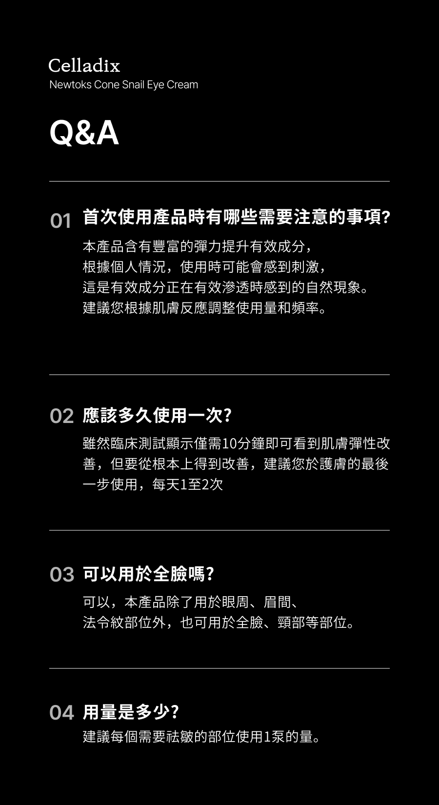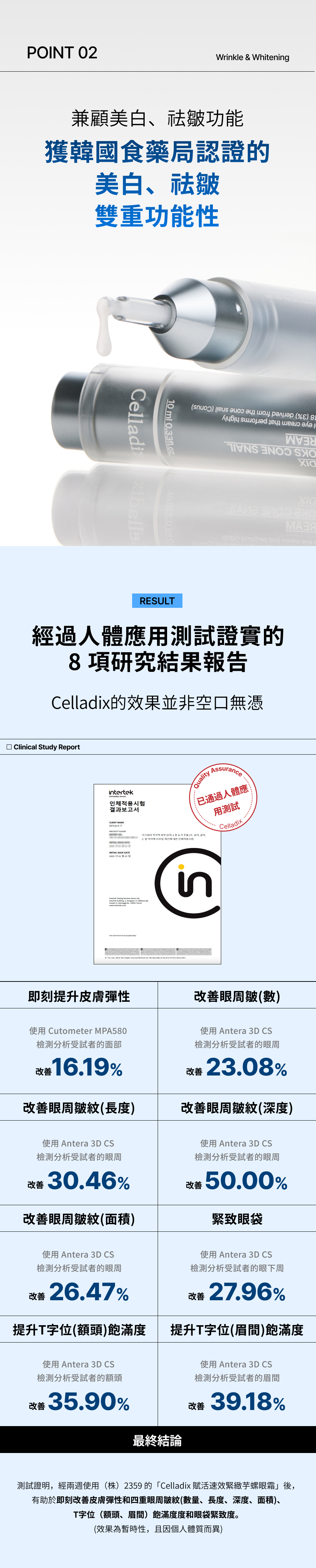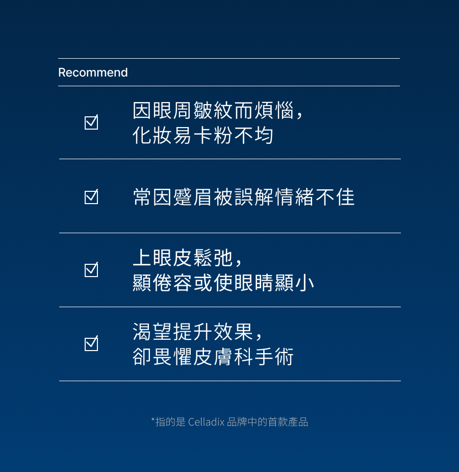 - 四重眼周細紋與眼袋拉提改善,已通過人體試驗